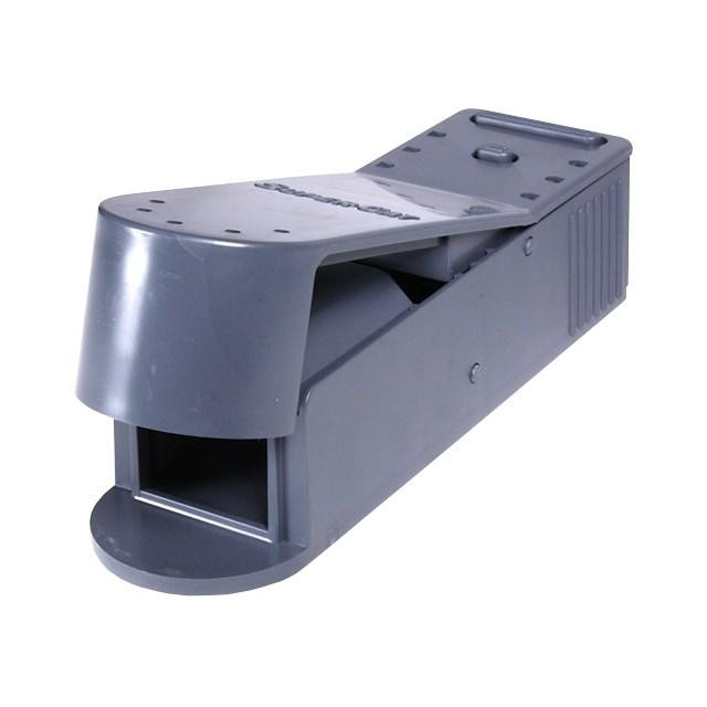 - A csapda felnyitásához a hosszú gombot, lezárásához a kisebb gombot nyomja le. A nyitott csapdát helyezze el párhuzamosan a fallal, vagy a fal felé, amerre Ön szerint az egér, egerek közlekednek. Ellenőrizze a csapdát 2-3 óránként, hogy az elfogott egér ne szenvedjen a csapdában.
